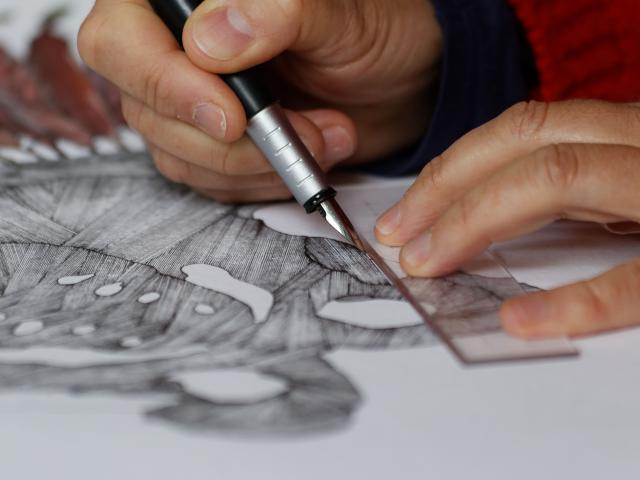 La broderie lui offre également un moyen de transposer ses dessins sur des objets bien connus de notre quotidien, comme des mouchoirs ou du drap de torchon.