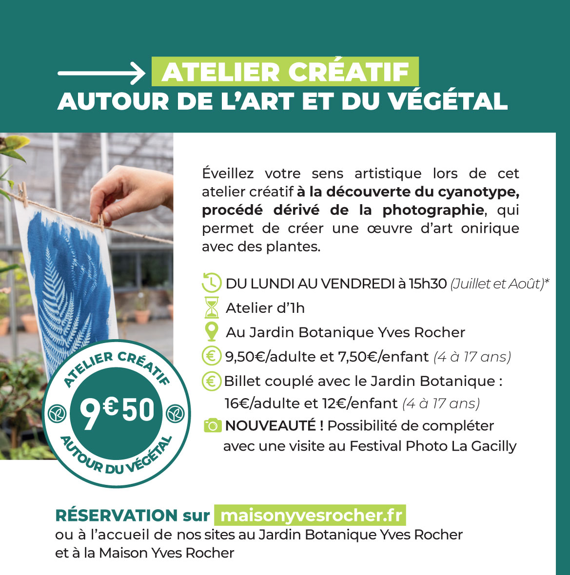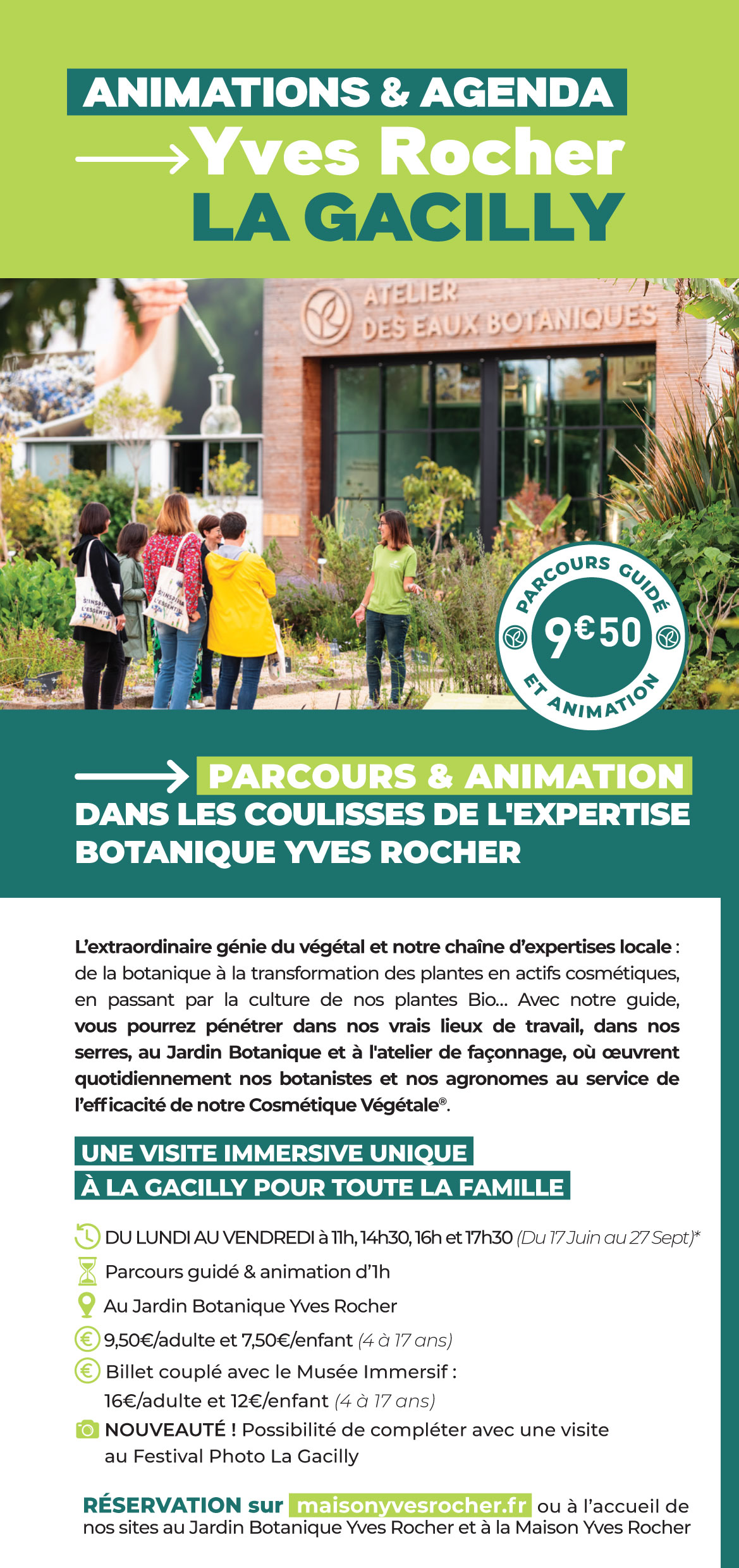 Une visite immersive unique à la Gacilly pour toute la famille. Parcours guidé et animation d’1 heure. Réservation sur maisonyvesrocher.fr ou à l’accueil des sites au Jardin Botanique et à la Maison Yves Rocher.
