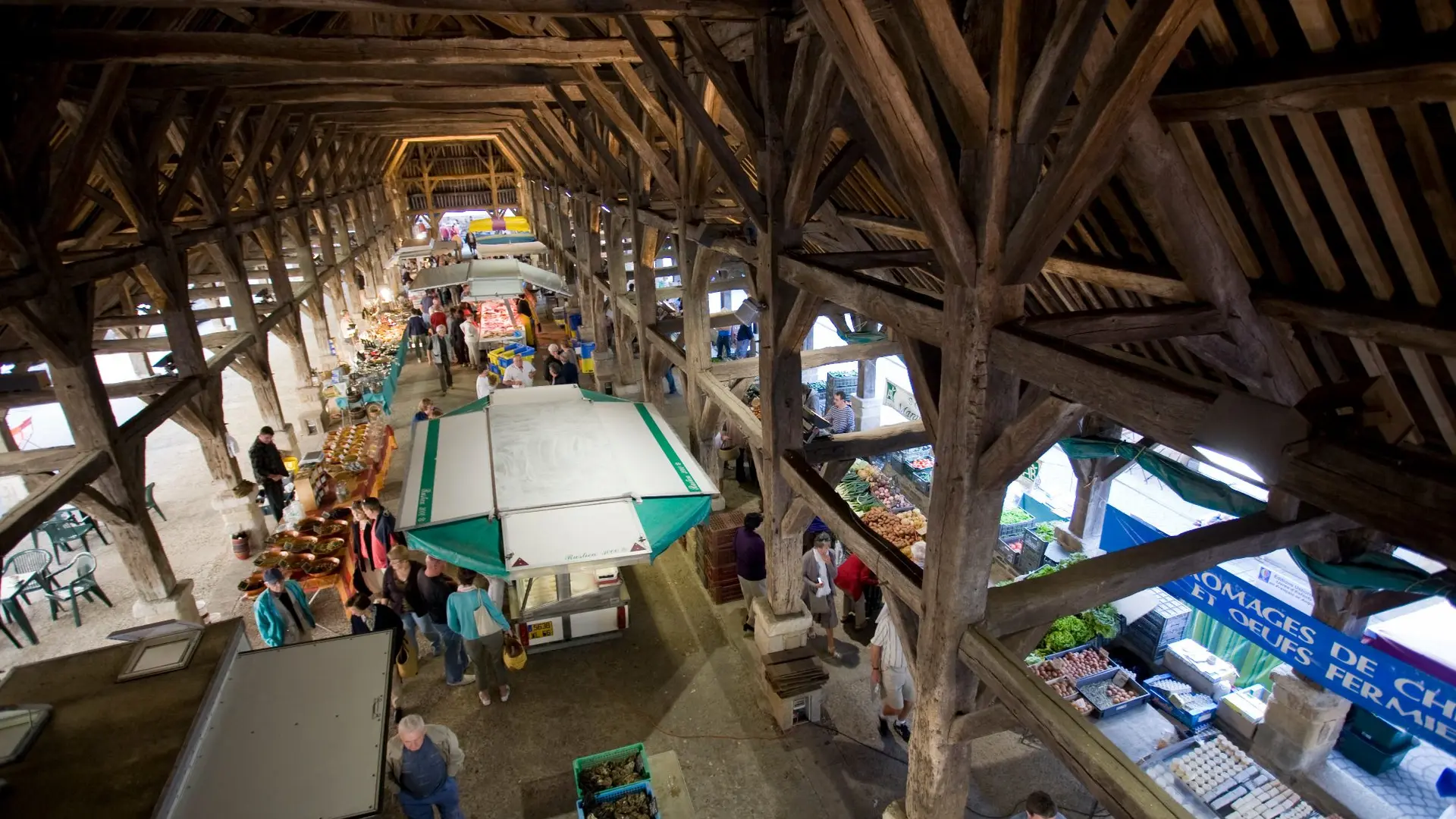 Ces superbes Halles à charpente de bois du XVIème siècle, situées en plein coeur de la ville, sont classées aux "Monuments Historiques".