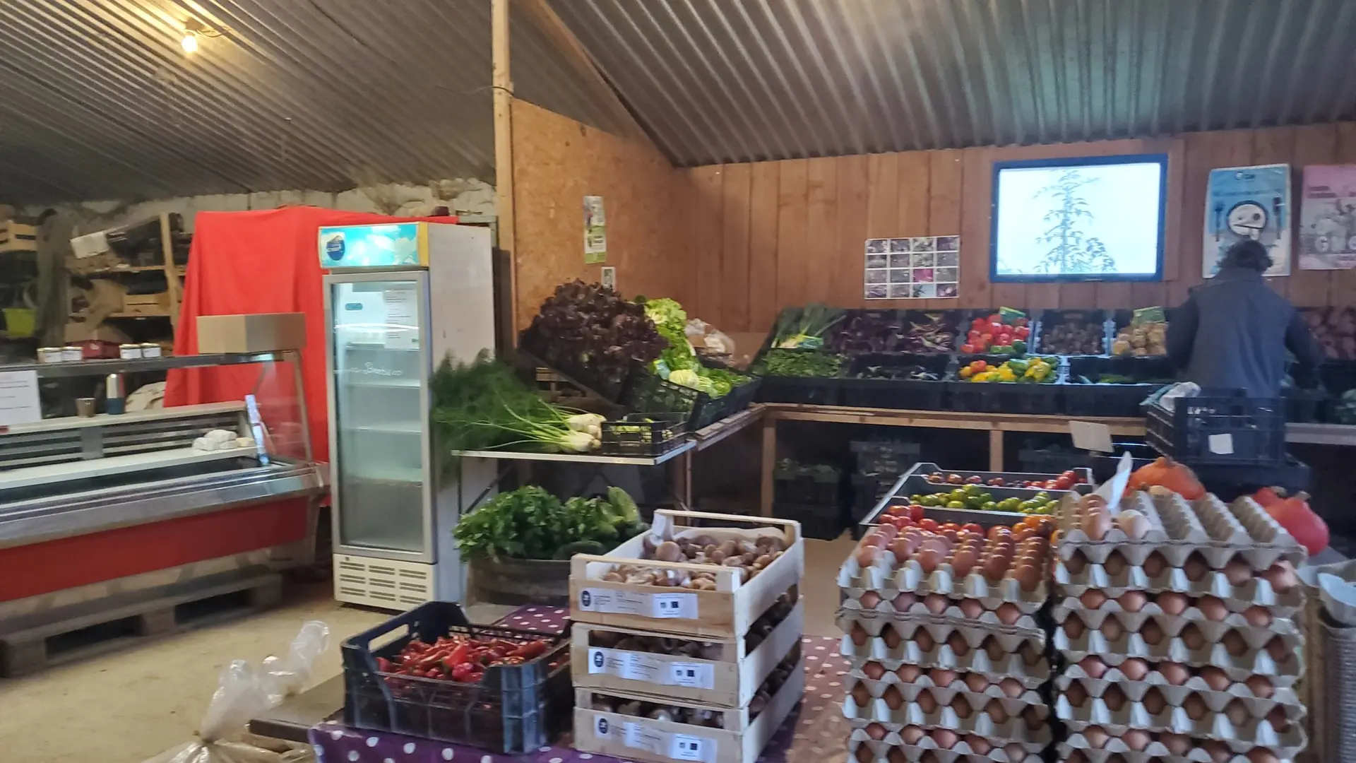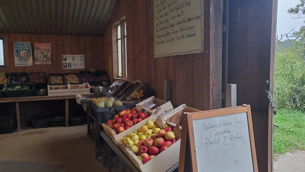 Vente des produits de la ferme maraichère bio et de producteurs locaux.