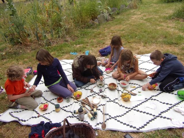 - des ateliers de travaux manuels, du bricolage (poterie, tissage, vannerie, travail du cuir, pour parcheminage et montage d’instruments)