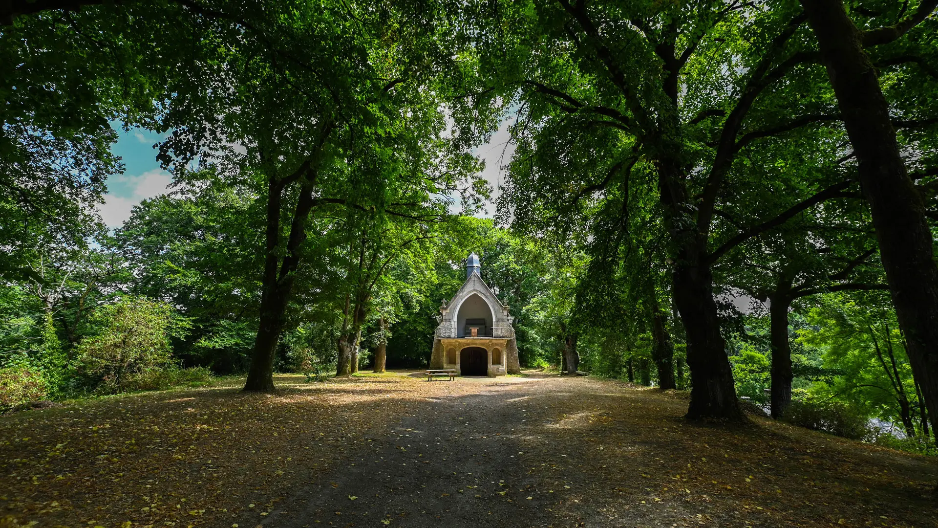 Blottie sous les arbres, elle possède une cloche datant de 1670.