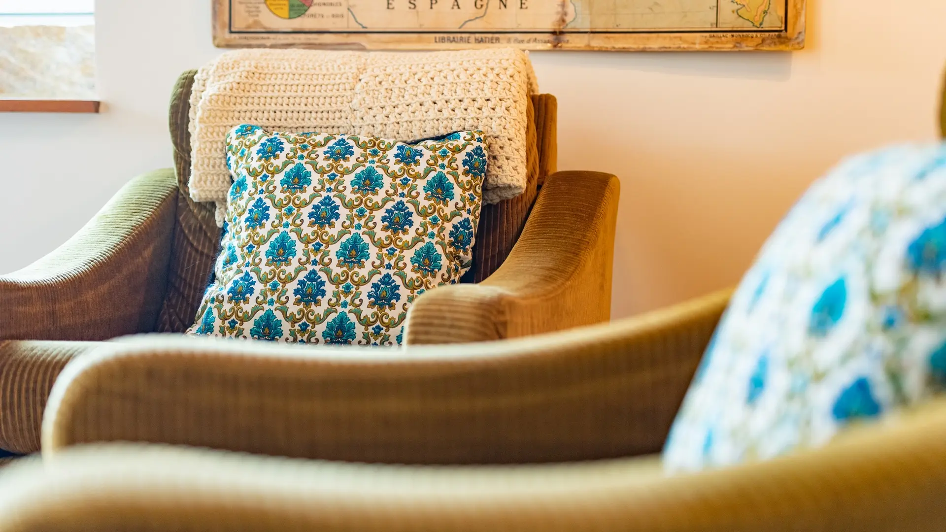 Au premier étage, vous trouverez un salon de lecture et de détente chaleureux, et deux chambres attenantes.
