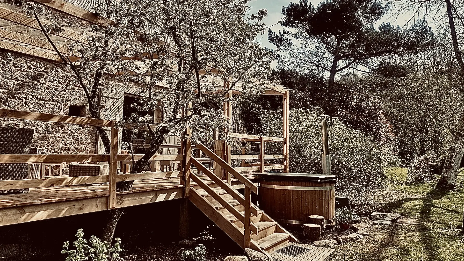 Une terrasse aménagée, agréablement exposée, offre une vue sur le parc, la rivière et le canal d'amenée. L'ensemble du domaine vous est ouvert. Vous pourrez vous promener dans le sous-bois près duquel est aménagé une aire de jeux pour les enfants. En amont du gîte, sur la digue bordant l'étang de plus d'1 ha, un espace détente équipé d'un Spa nordique privatif et terrasse couverte.