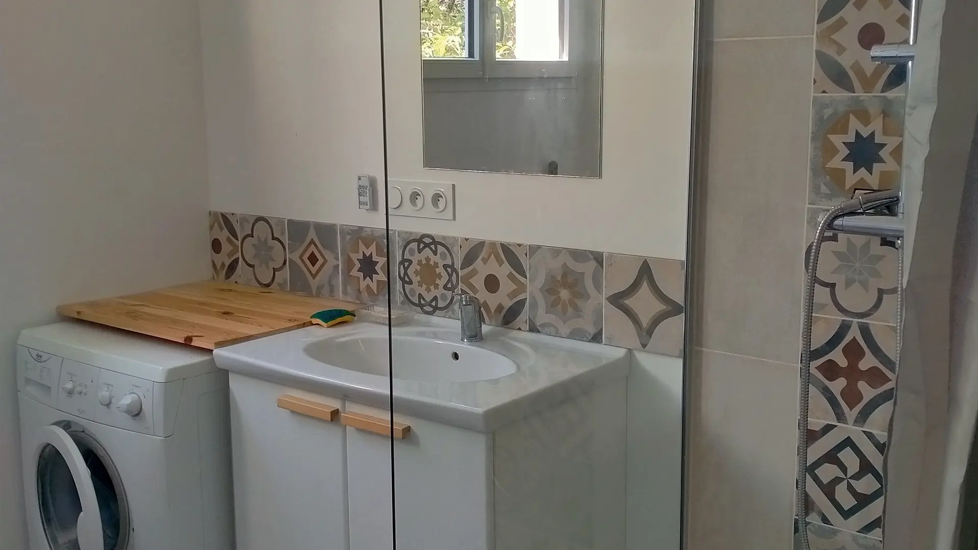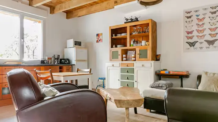 Notre logement d'environ 40m2 dispose d'une pièce de vie salon/cuisine, d'une chambre, d'une salle de bain et de toilettes sèches.