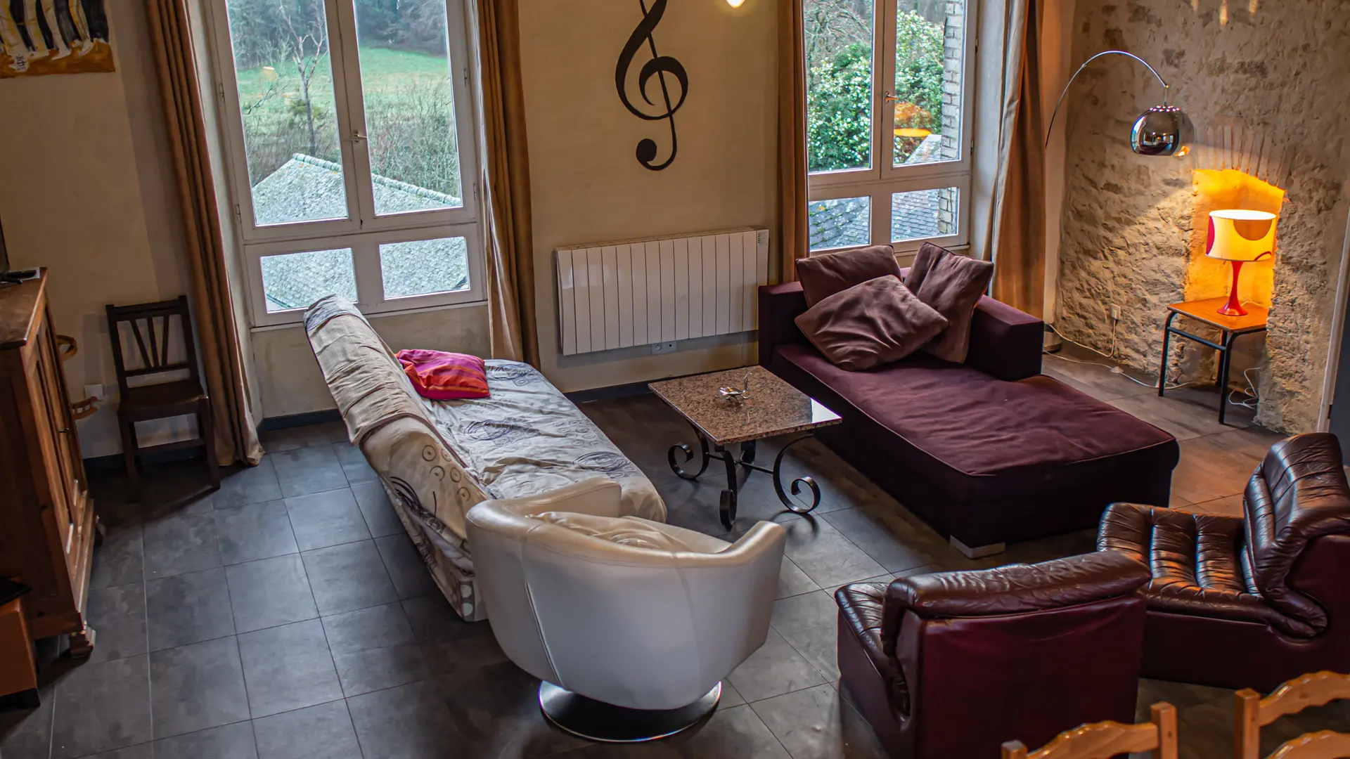 La salle de vie est exposée plein sud avec une vue imprenable sur la vallée du Gueuzon.