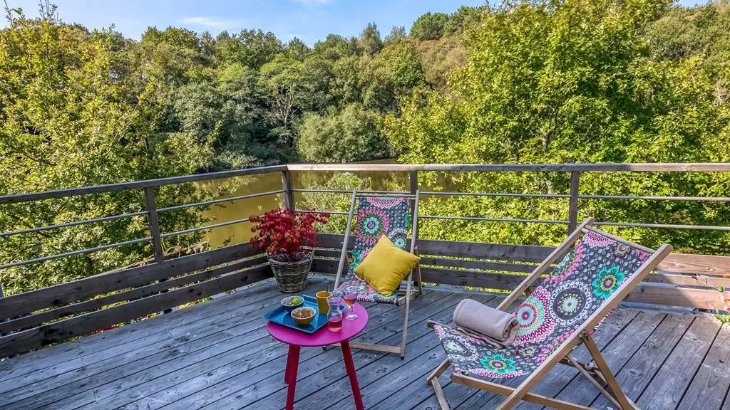 Flottant sur l'eau, entouré par la forêt, "le Nid" vous fera vivre une aventure insolite sur un site historique et dans une nature préservée.