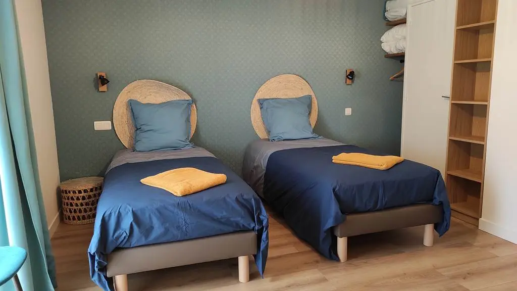 Proche de Rochefort en terre ,à la campagne, vous serez accueillis dans un gîte cosy à la décoration actuelle et chaleureuse. Il est composé d'une salle principale avec sa cuisine équipée et un coin salon pour se détendre. Les deux chambres ont chacune une salle de bain et wc indépendant. La kerezenn est équipée d'un lit de 160x200 et la seconde de deux lits de 90x200 et un de 80x200. A partir de la mi mai vous purrez vous prélasser au bord de notre piscine couverte ou sur l'un des salons de jardin.