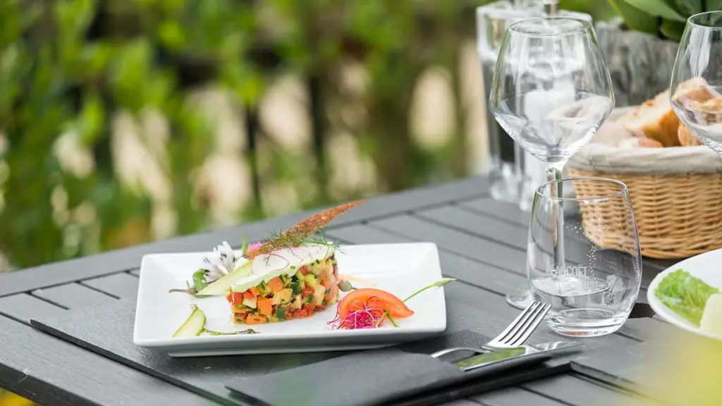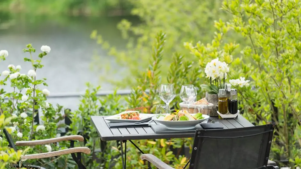Le décor très végétal et la musique de la rivière se déroulant à vos pieds accompagnent à merveille des assiettes gourmandes où les produits sains sont rois. Salade vietnamienne au seitan mariné avec ses nouilles de riz croustillantes, couscous végétalien, effiloché de cabillaud à la catalane, tarte de légumes d’été au pesto et mesclun de jeunes pousses… la carte, à la fois simple et exotique, séduira les petits comme les grands.