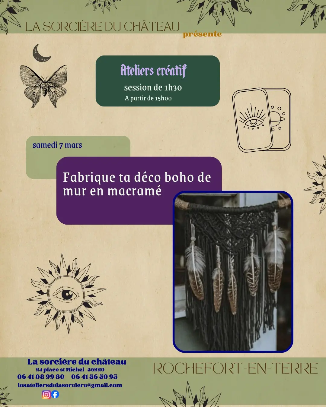 Atelier créatif dans la détente et la bonne humeur pour créer sa déco de mur bohème en macramé. La Sorcière du château célèbre Imbolc, de tradition gaélique, à mi-chemin entre le solstice d'hiver et l'équinoxe de printemps.