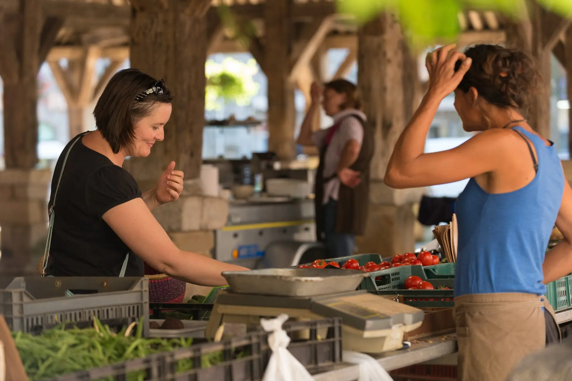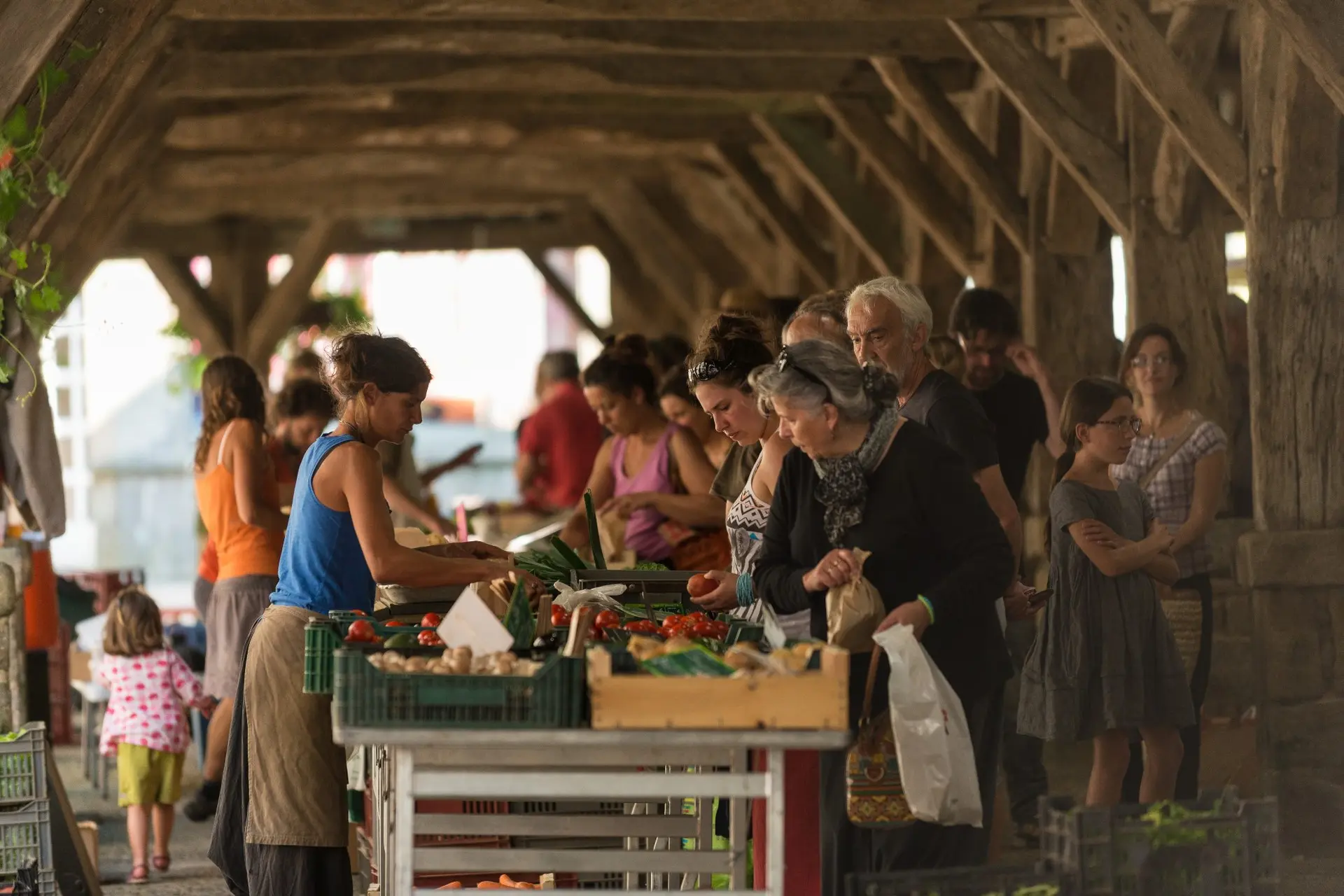 Tous les mercredis, sous les halles de Questembert classées Monument Historique, l'association les Convivi'halles organise le marché des producteurs.