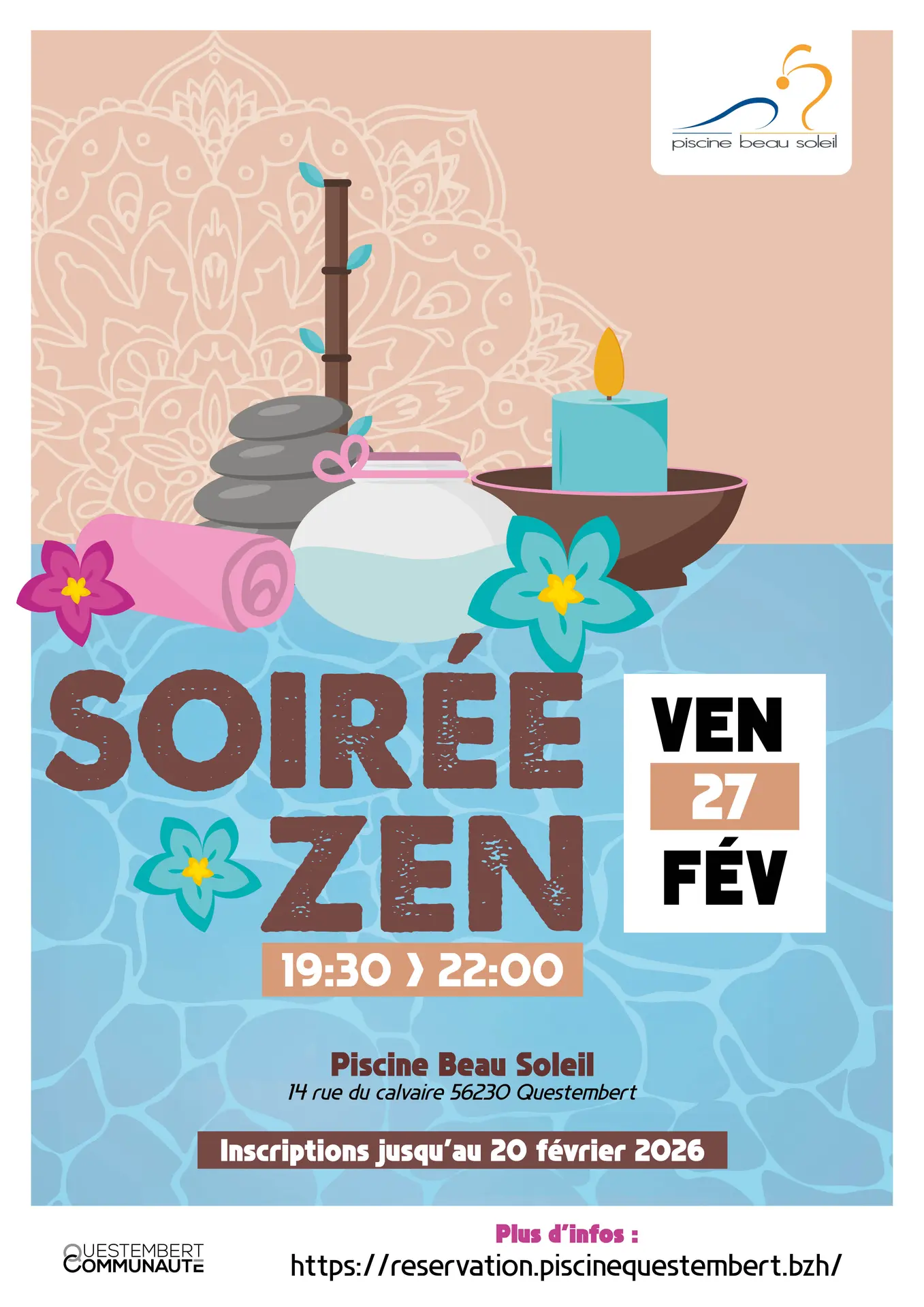 La piscine Beau Soleil vous invite à une expérience unique placée sous le signe de la détente et du bien-être, à l’occasion d’une soirée zen organisée le vendredi 27 février 2026 de 19h30 à 22h.