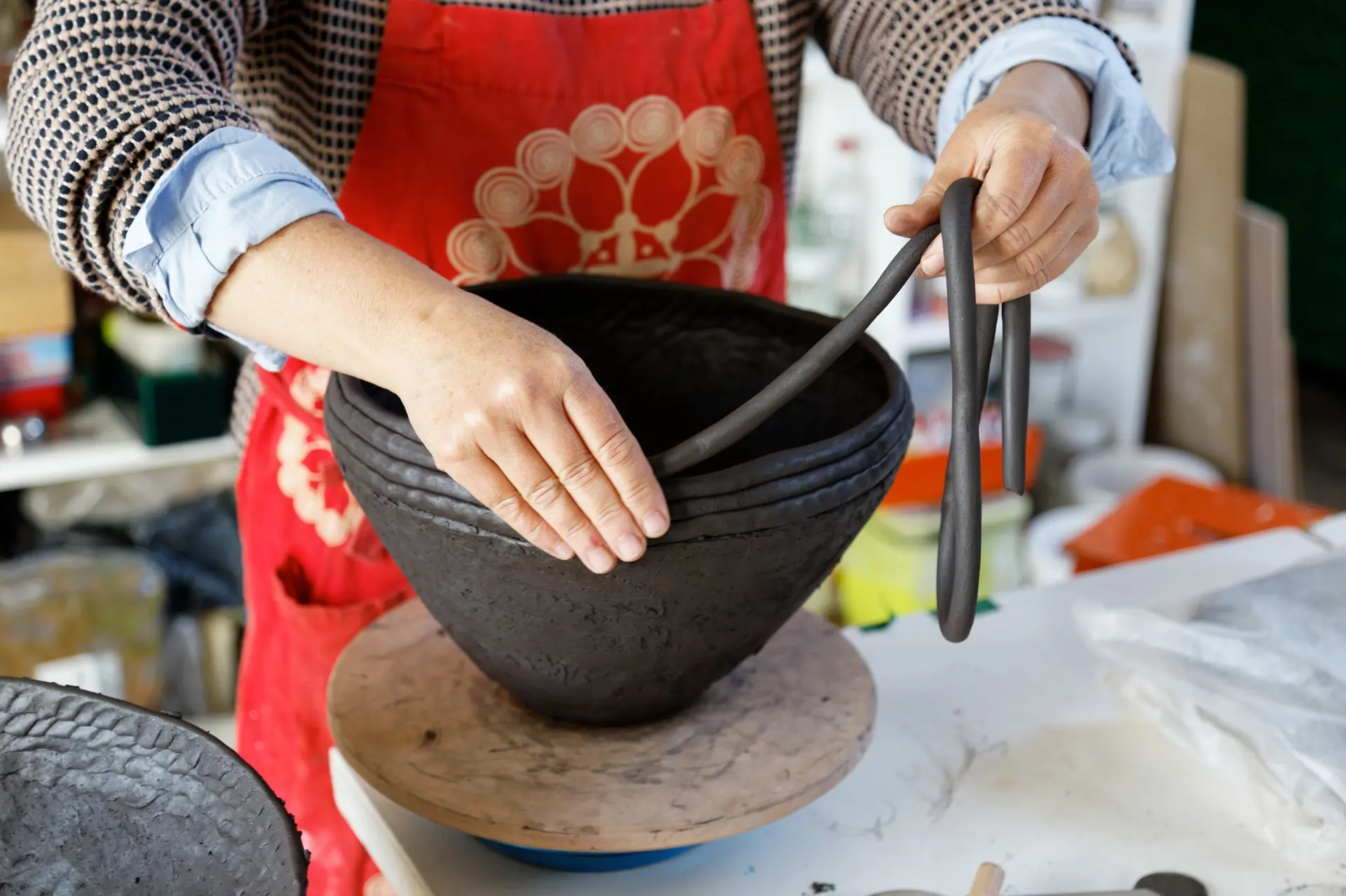Après le stage, les pièces sèchent et sont cuites en mono cuisson ; vous pouvez les récupérer 4 à 5 semaines après.